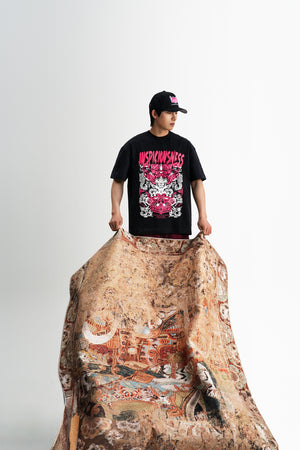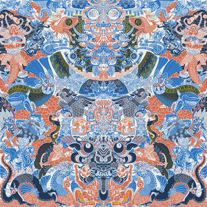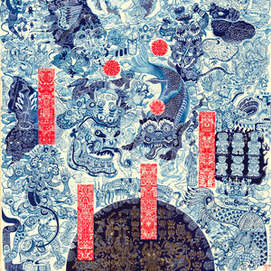 この作品は、古代中国の文献『山海経』からインスピレーションを得たもので、神話上の生き物、シャーマニズムの模様、伝統的な中国デザインで満たされた多次元の構成が特徴です。この作品は、太古の人類と神獣の共存を美しく表現しています。