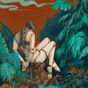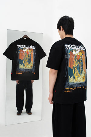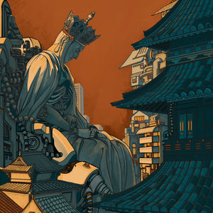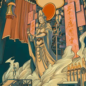曾天璐は中国美術学院で修士号を取得し、伝統的な中国人物画を教えています。彼は中国で数多くの水墨画や書道展に招待されています。このサイバーパンク仏像シリーズを制作する中で、彼は壊れたロボットが充電ステーションよりも寺院を選ぶというアイデアにインスピレーションを受けました。それは混乱感を与えると同時に、東洋の儀式的な美しさも感じさせます。このシリーズは仏教とテクノロジーの融合を示し、人類の未来に対する想像力を探求しています。